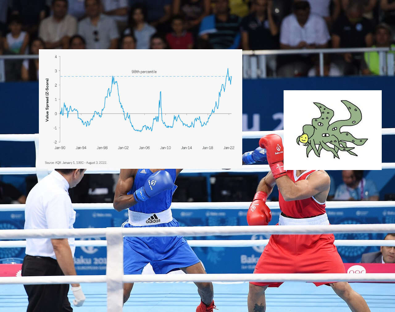 All else equal, a wider value spread is good for value because you’re buying the same fundamentals at a lower price. However, a widening spread is bad for value because it means value stocks are declining (relative to growth stocks). This is analogous to how bond investors like when bond yields are high, but they lose money when yields are increasing.