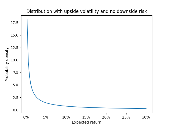 As an illustration, suppose there’s some investment that only ever produces positive returns, and the distribution of outcomes looks like this:
